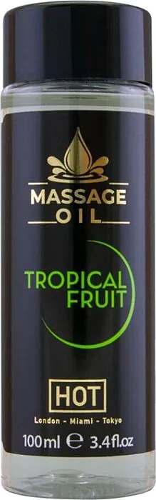 Transforme ton moment de détente avec l'huile de massage aux fruits tropicaux de HOT. Enrichie en vitamine E, elle laisse ta peau soyeuse et nourrit en profondeur.