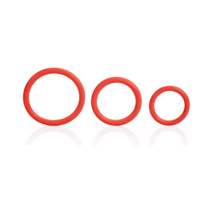 ¡Élevez votre jeu intime avec l'ensemble d'anneaux Tri-rings rouge ! Obtenez des érections plus fermes, durables et des orgasmes intenses avec ces trois anneaux en silicone rouge. Vivez des sensations incroyables et améliorez vos performances dans l'intimité ! Diamètres de 3 cm, 3,5 cm et 4,5 cm pour s'adapter à vos besoins. Sans latex ni phtalates ! Recommandé d'utiliser avec un lubrifiant à base d'eau. N'attendez plus, appropriez-vous cette expérience unique et profitez pleinement en couple ! Tri-rings rouge, plaisir garanti ! Procurez-vous-les dès maintenant !