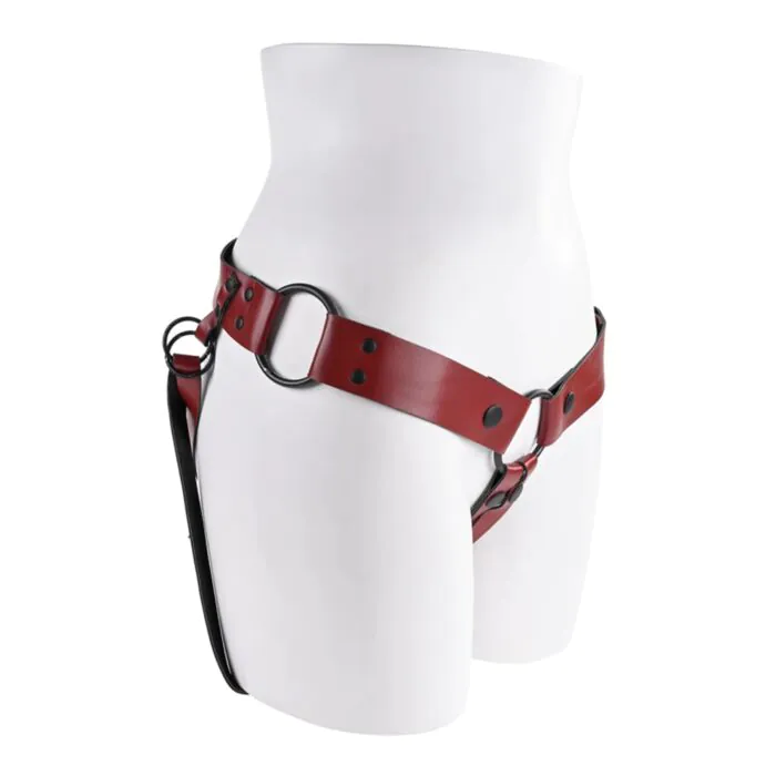 Arnés ajustable pensado para usar con dildos o fundas para el pene: perfecto si quieres aumentar el tamaño o mantener penetración en casos de disfunción eréctil. Sus tiras gruesas y regulables garantizan sujeción y comodidad, dejando el trasero y los testículos al descubierto para mayor libertad de movimiento. Talla única que se adapta hasta 175 cm de cadera. Color rojo con detalles negros.
