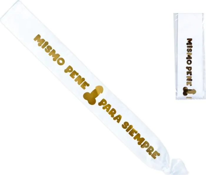 Ajoute du piquant à tes événements avec cette bande festive au design de pénis métallisé. Son tissu léger garantit un confort tout au long de la fête, tandis que son contraste entre le blanc et le brillant attire inévitablement l'attention.