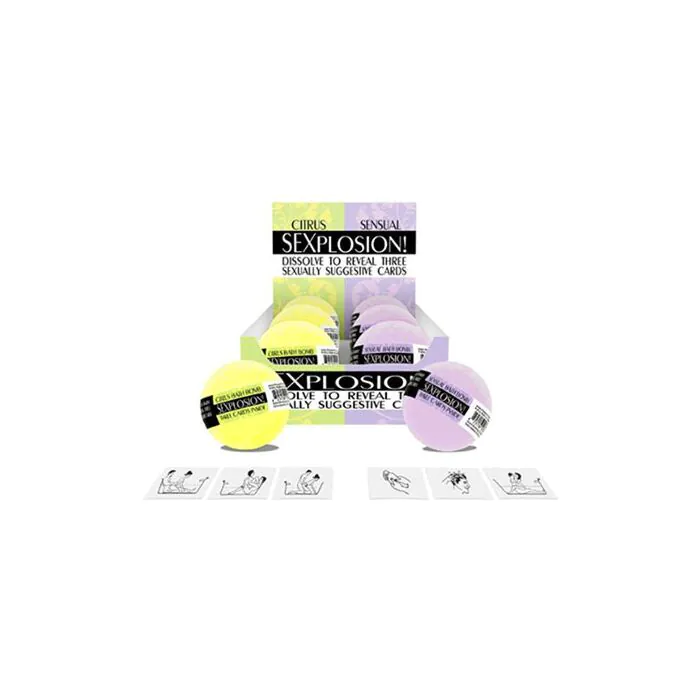 Ces bombes de bain SEXPLOSION! de Kheper Games sont des boules dures qui moussent et pétillent au contact de l'eau chaude. Conçues pour apporter une touche ludique et olfactive à ton bain, elles dégagent des parfums lavande ou exotique et laissent pendant plusieurs minutes une effervescence visible et odorante. Chaque bombe contient une carte à caractère sexuel suggestif pour ajouter un jeu érotique après le bain.
