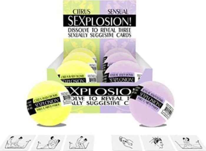 Ces bombes de bain SEXPLOSION! de Kheper Games sont des boules dures qui moussent et pétillent au contact de l'eau chaude. Conçues pour apporter une touche ludique et olfactive à ton bain, elles dégagent des parfums lavande ou exotique et laissent pendant plusieurs minutes une effervescence visible et odorante. Chaque bombe contient une carte à caractère sexuel suggestif pour ajouter un jeu érotique après le bain.