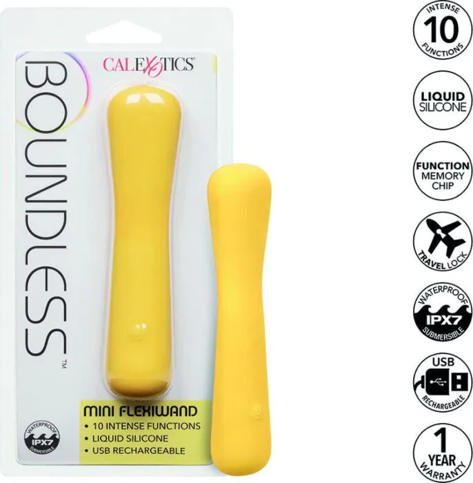 Le Boundless Mini FlexiWand de CALEXOTICS offre une stimulation intense grâce à sa forme flexible et ses 10 modes de vibration. Recommandé pour ceux qui recherchent un plaisir varié et personnalisé.