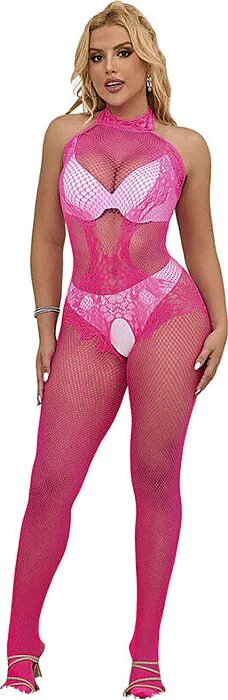 Élevez votre élégance avec le bodystocking SUBBLIME. Son design en dentelle rose et résille offre une silhouette séduisante, recommandée pour des occasions spéciales.