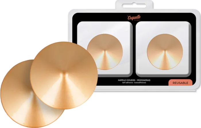 Ajoute une touche de sensualité à tes ensembles avec ces couvre-pezons en métal doré. Leur design attractif et la cinta autoadhesiva les rendent faciles à utiliser et à enlever selon tes envies. Idéal pour attirer les regards.