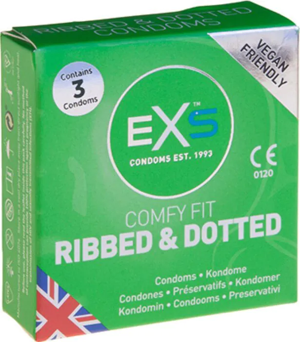 Les préservatifs Ribbed & Dotted d'Exs offrent une stimulation accrue grâce à leur texture externe. Idéaux pour ceux qui recherchent des sensations intenses et un ajustement confortable.
