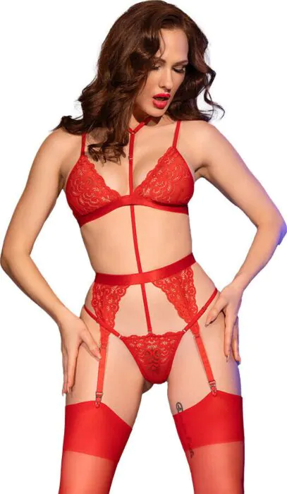 Ensemble de lingerie Chilirose CR 4713 rouge en dentelle