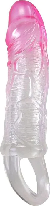 Stimule intensément avec cette gaine en TPR qui offre des caractéristiques de texture supplémentaire pour une stimulation interne renforcée. Conçue pour s'adapter confortablement, elle comprend un anneau pour les testicules qui maintient l'extenseur en place tout en prolongeant l'érection.