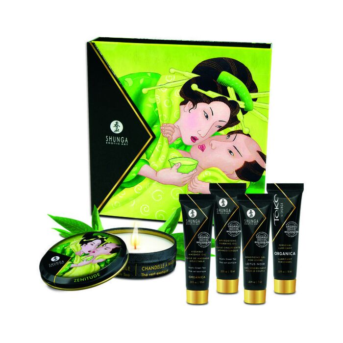 Laissez-vous séduire par la sensualité et le mystère de la collection "Secrets d'une Geisha Thé Vert" de Shunga ! Cet exquis kit de cosmétique érotique vous invite à explorer les plaisirs les plus intimes et sensuels en couple, en combinant des arômes et des saveurs aphrodisiaques pour stimuler tous vos sens.