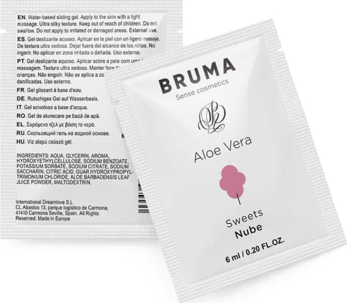 Le gel glissant BRUMA de 6 ML à base d'aloe vera assure une lubrification douce et confortable. Recommandé pour vos moments intimes, en solo ou à deux.