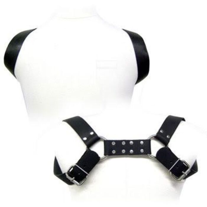 Un ajustement recommandé et une sensation de liberté avec ce harnais en cuir pour homme. Conçu pour les adeptes du BDSM, il se fixe aux épaules, offrant un soutien robuste tout en étant confortable. Fabriqué en cuir, ce harnais est non seulement esthétique mais aussi résistant, indiqué pour vos sessions les plus audacieuses.