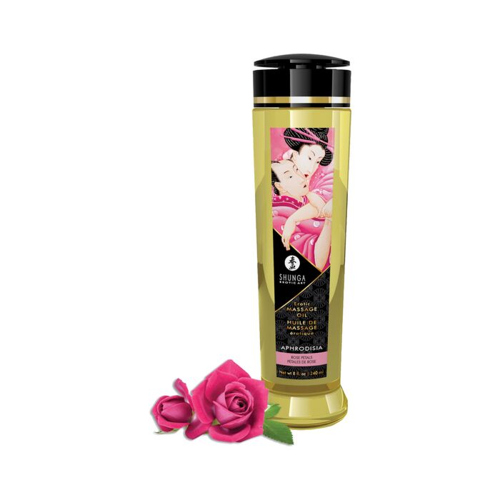 SHUNGA EROTIC MASSAGE OIL APHRODISIA es un aceite de masaje sensual de origen ORIENTAL de alta calidad, compuesto por una mezcla se aceites esenciales de almendras dulces, semillas de uva, sésamo, aguacate, esencia pura de Ylang-Ylang y Yohime.