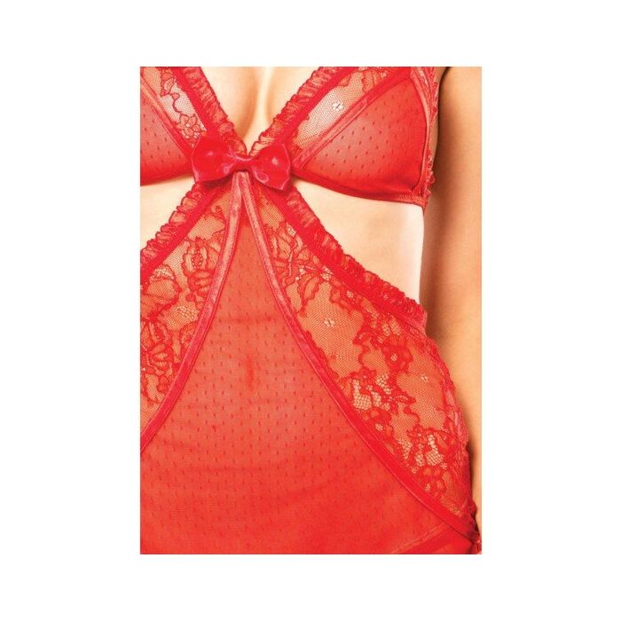 LEG AVENUE 2 PCS. LACE APRON CHEMISE & G-STRING RED.