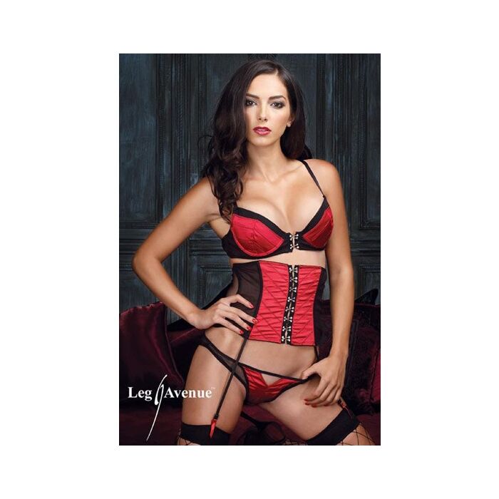 Leg avenue ensemble de soutien-gorge, porte-jarretelles et string satin corse rouge