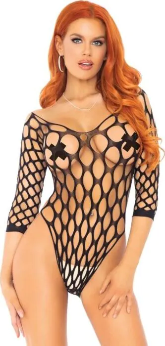 Ce teddy Leg Avenue en filet ajouré apporte une touche de séduction raffinée : manches 3/4, coupe extensible et taille unique pour s'adapter à plusieurs silhouettes. Conçu pour les personnes qui veulent une pièce facile à enfiler et visuellement marquante sans structure rigide. Privilégie un look glamour à porter en soirée ou en intimité.