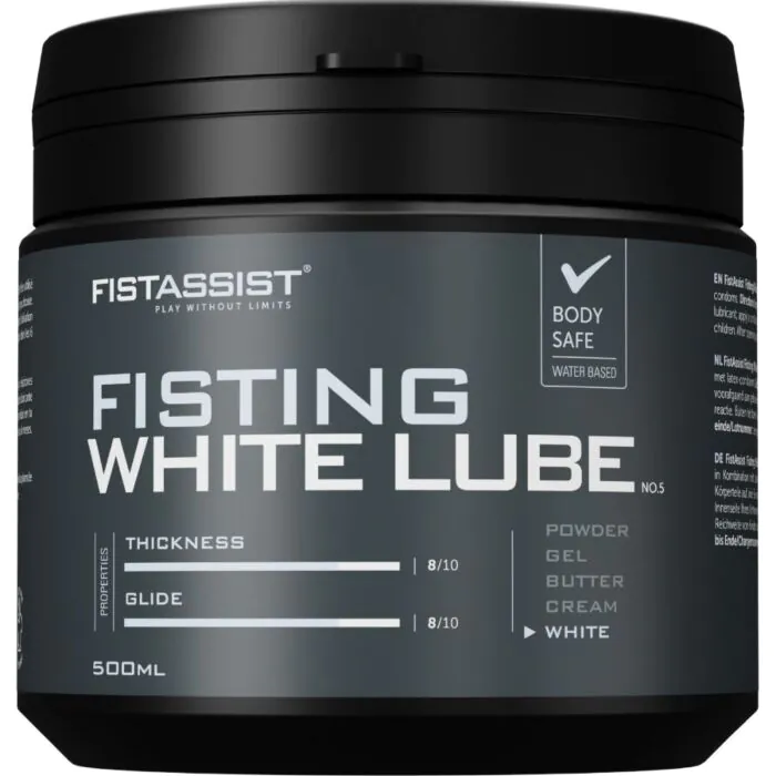 Gel blanc ultra‑épais à base d'eau conçu pour les jeux visuels et les pratiques intenses comme le fisting. Offre une texture crémeuse qui adhère à la peau, compatible avec préservatifs et jouets, et formulé pour peaux sensibles. Si tu veux une glisse très dense et soutenue avec un rendu visuel marqué, ce gel est fait pour toi.