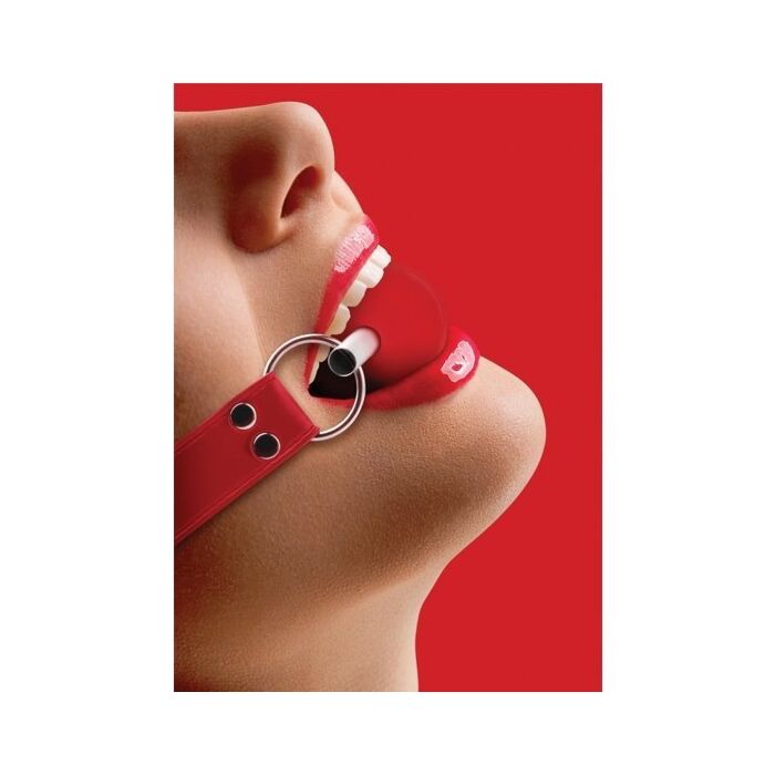 Ouch balle gag avec des ceintures en cuir rouge