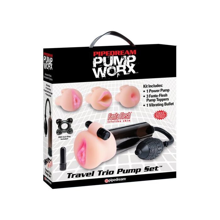 Ce produit innovant combine la fonctionnalité d'un développeur avec l'excitation d'un masturbateur, le tout en un! Le kit de luxe comprend 9 pièces qui vous garantissent une expérience incomparable. Il est présenté dans une boîte de transport discrète et comprend une pompe à succion idéale pour les débutants, 3 têtes Fanta-Flesh qui simulent parfaitement les sensations du sexe vaginal, anal et oral, une puissante balle vibrante résistante à l'eau, un anneau pour le pénis et des échantillons gratuits de lubrifiant Moist Lubricant, de savon nettoyant Pump Worx Toy Cleaner et de crème épaississante.