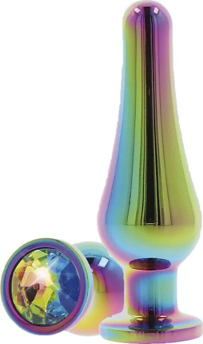 Ajoute une touche glamour à tes moments intimes avec le plug anal Twilight Bum Bijou. Sa silhouette cônque et sa base évasée, ornée d'une gemme arc-en-ciel, offrent une sensation de luxe à chaque utilisation. Fabriqué en aluminium sans nickel, ce plug est doux au toucher et totalement sécurisé pour le corps.
