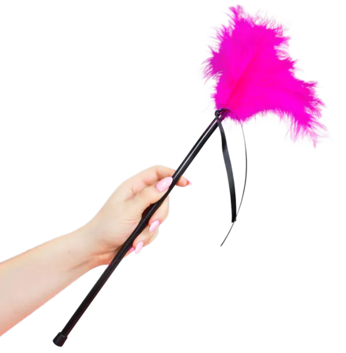 Tiens la tige près de l'extrémité pour un geste ample et léger, ou plus près des plumes pour des touches plus contrôlées. Varie la vitesse et l'angle: effleurements lents pour stimuler la peau, mouvements rapides pour créer des picotements. Evite les frictions violentes qui pourraient abîmer les plumes. Ne l'utilise pas sur muqueuses ou plaies ouvertes.