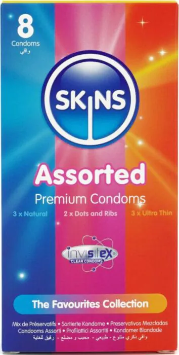 Le pack de 8 préservatifs Skins offre une sélection variée pour satisfaire toutes vos préférences. Faits en latex naturel, avec odeur de vanille et lubrification supplémentaire pour un confort optimal.