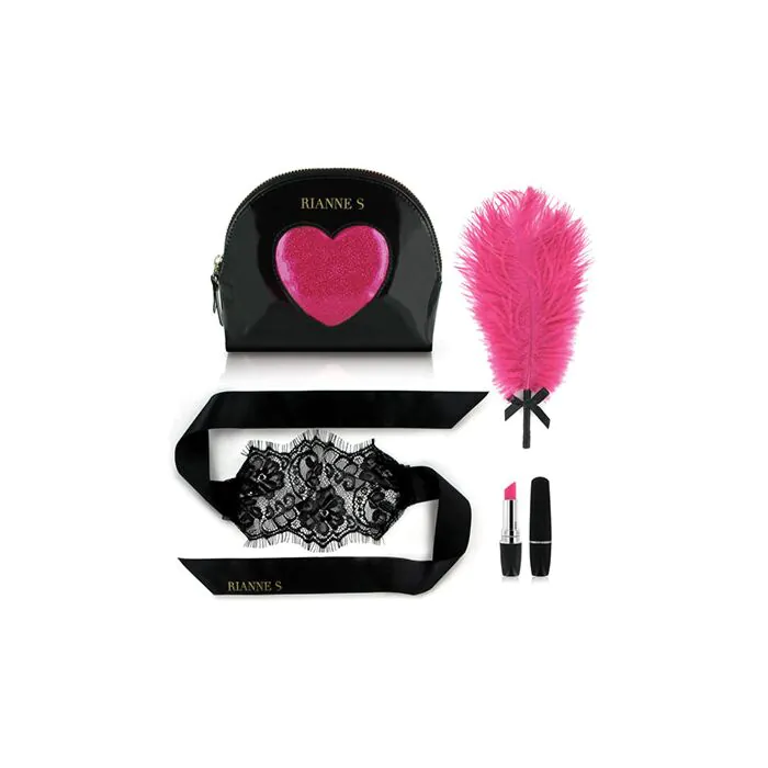 Tu regardes un coffret pensé pour la séduction et la discrétion. Le Kit d'Amour Rianne S combine un mini vibromasseur « format rouge à lèvres » qui se glisse dans un sac sans attirer l’attention, une plume rose pour caresser et éveiller la peau, et un bandeau noir en dentelle et soie pour intensifier le jeu sensuel. C'est un ensemble destiné aux personnes et aux couples qui privilégient l'esthétique et la légèreté plutôt que la puissance brute.