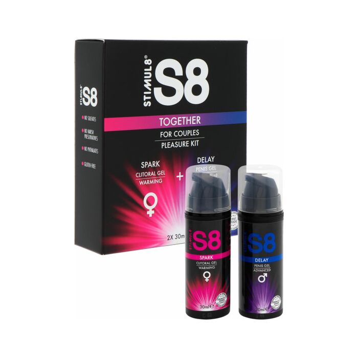 Découvrez le nouveau kit S8 Together, l'ensemble parfait pour partager des moments de passion avec votre partenaire! Ce kit incroyable comprend le gel clitoridien S8 Spark pour elle et le gel S8 Delay pour lui, deux produits conçus pour améliorer le plaisir et l'intimité en couple.