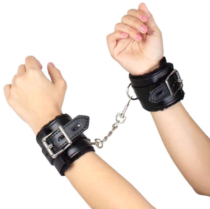 Des menottes en cuir synthétique avec un intérieur en peluche pour des sessions de bondage sensuelles. Idéales pour les novices et les passionnés, elles offrent une sécurité renforcée grâce à leur système de verrouillage.