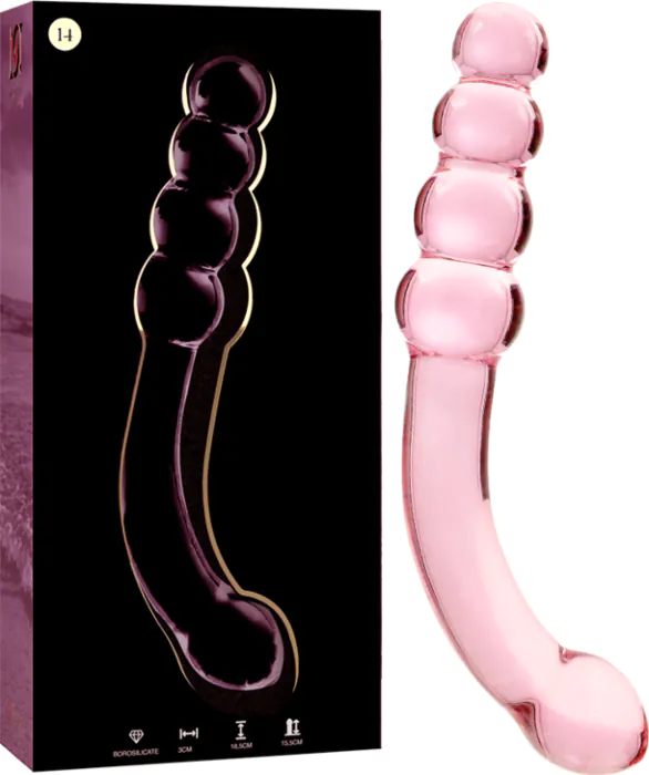 Ce dildo en cristal borosilicate de 18,5 cm offre une expérience sensorielle luxueuse et sécurisée. Recommandé pour l'exploration anale avec style.