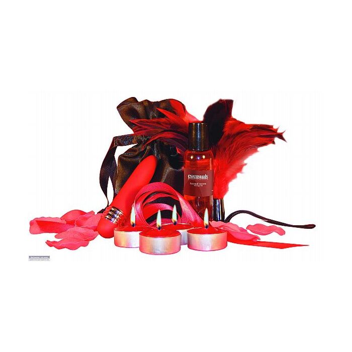 Un sac de rouge de pétales de rose pour remplir un bain chaud ou turndown avec des bougies pour une huile de massage romantique pour un massage érotique, un stylo ultra élégant et un vibrateur puissant pour stimuler le jeu. Une chose est certaine, ce sera une soirée inoubliable. La meilleure façon de surprendre votre partenaire. Essensuals SECRETS AMOUREUX SENSUELLES SET comprend tout le nécessaire pour séduire votre partenaire. Avec une présentation et l'emballage très sensuel, ce fabuleux kit comprend: - 4 bougies rouges pour créer le cadre idéal - Belle rose rouge pétales sur le lit ou pour remplir un bain relaxant - 1 bouteille d'huile de massage érotique pour se détendre et améliorer l'humeur - (! si nécessaire) 1 ultra plume pour chatouiller et exciter votre partenaire - un bon vibrateur rouge classique pour le massage intérieur ou extérieur et de stimulation. Que pourriez-vous demander de plus?. Il est le cadeau surprise parfaite! Il fonctionne avec 1 pile R6 / AA que vous pouvez trouver dans la section batterie.
