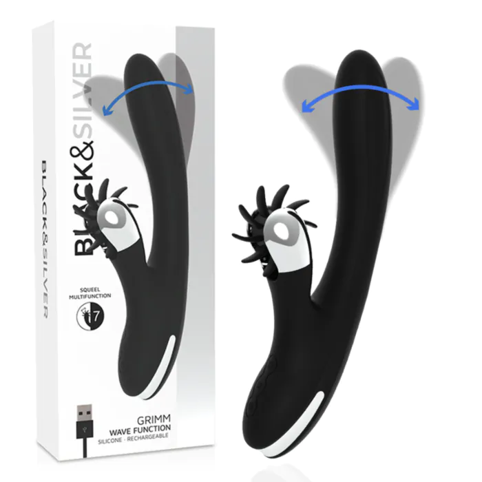 Le vibromasseur Bunny Grimm Wave Function de Black&Silver est un jouet hi-tech pensé pour combiner deux types de stimulation : le mouvement « wave » qui mime le doigté et une forte vibration. Conçu pour favoriser une stimulation du point G tout en proposant des sensations clitoridiennes ciblées, il se distingue par sa finition en silicone super douce et son ergonomie étudiée pour un contact agréable.