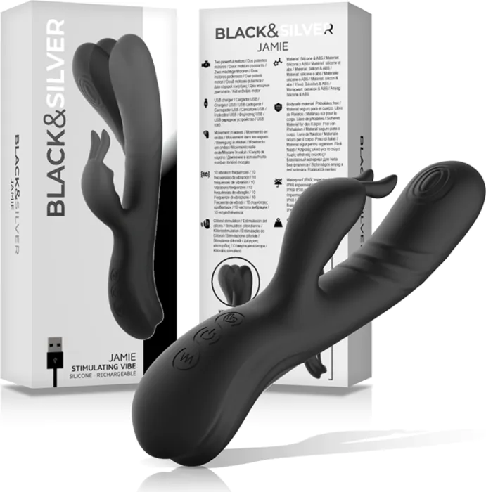 Vibrateur Rabbit Black&Silver Jamie - Double stimulation et silicone doux