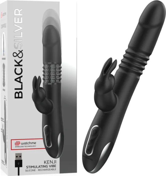 Ce vibromasseur KENJI de BLACK&SILVER combine plusieurs fonctions pour travailler le point G et le clitoris en même temps: perles rotatives à la base pour masser la zone G, mouvement « up & down » qui reproduit une pénétration mécanique et un stimulateur de type rabbit pour le clitoris. En boutique je te le présenterais comme un jouet conçu pour offrir des stimulations variées sans changer d'appareil.